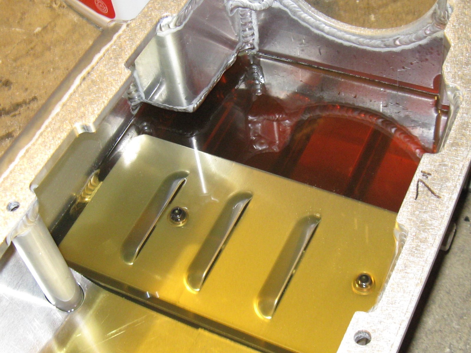 the sump...BF added a tell-tale in the middle of the sump....and the