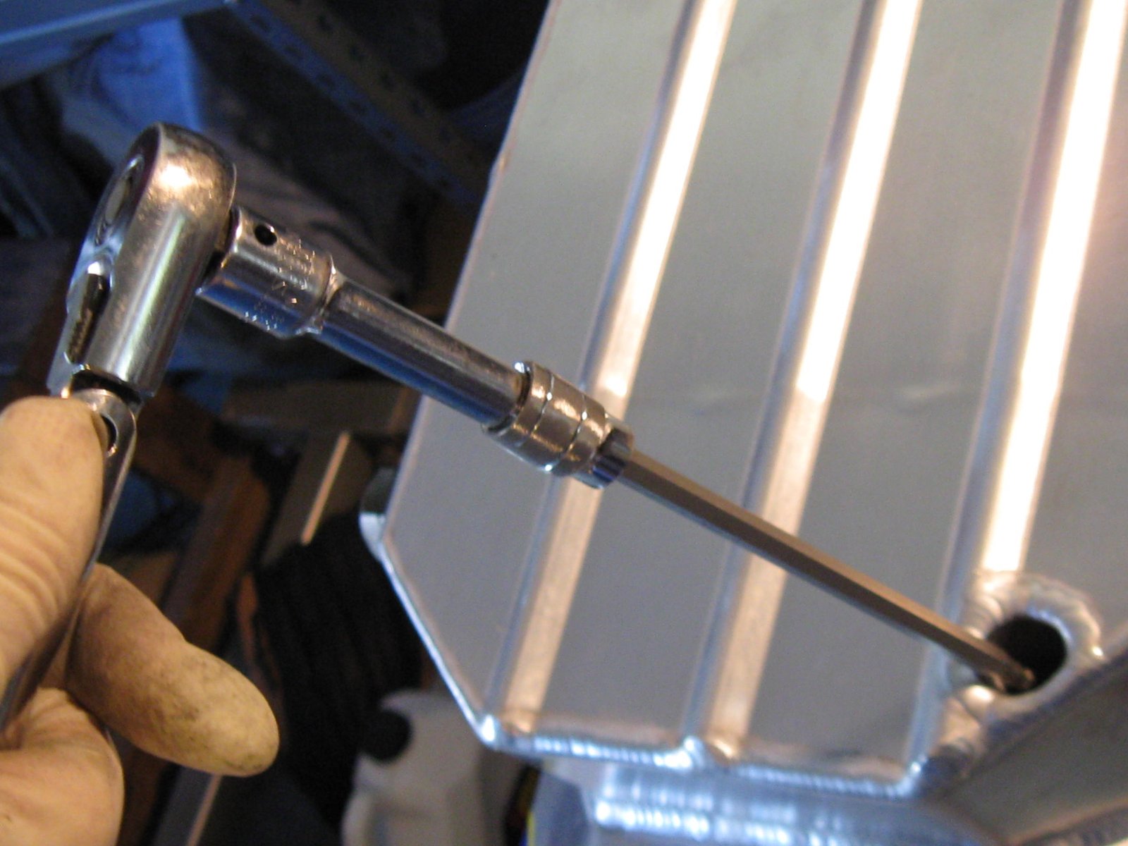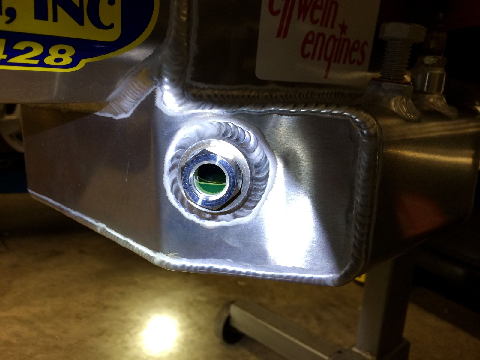 Jeff Johnston at Billet Fabrication installs the oil level sensor