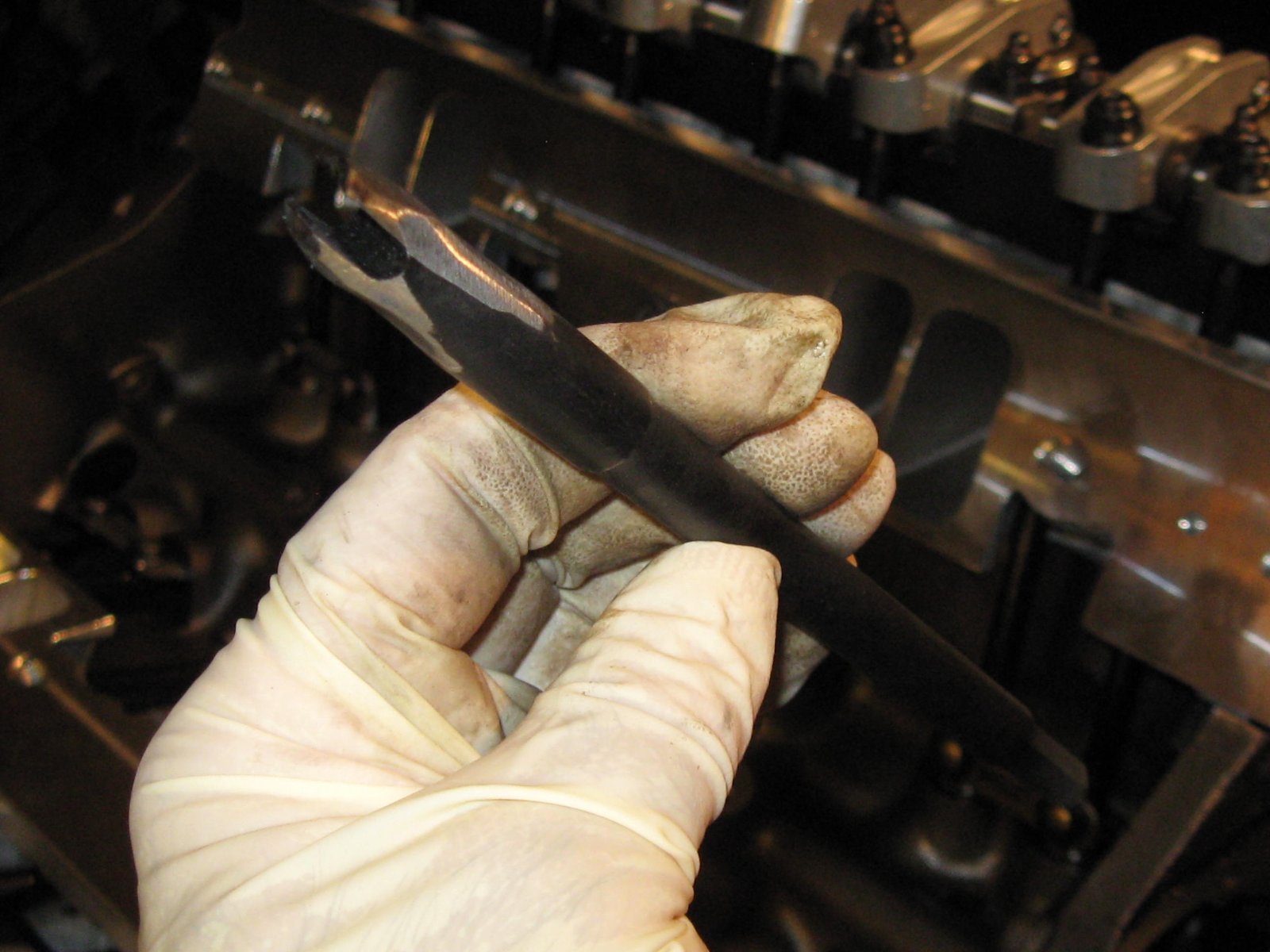 Checking for pushrod length. Exhaust can use a 7.900" and