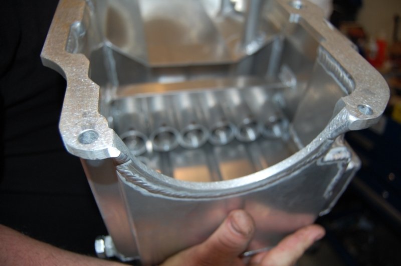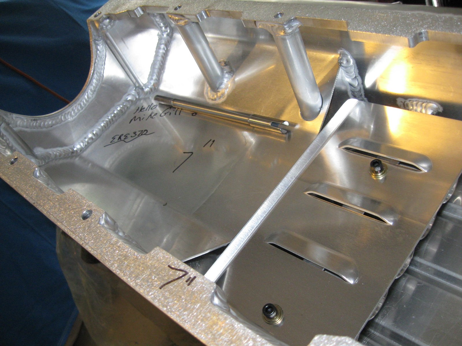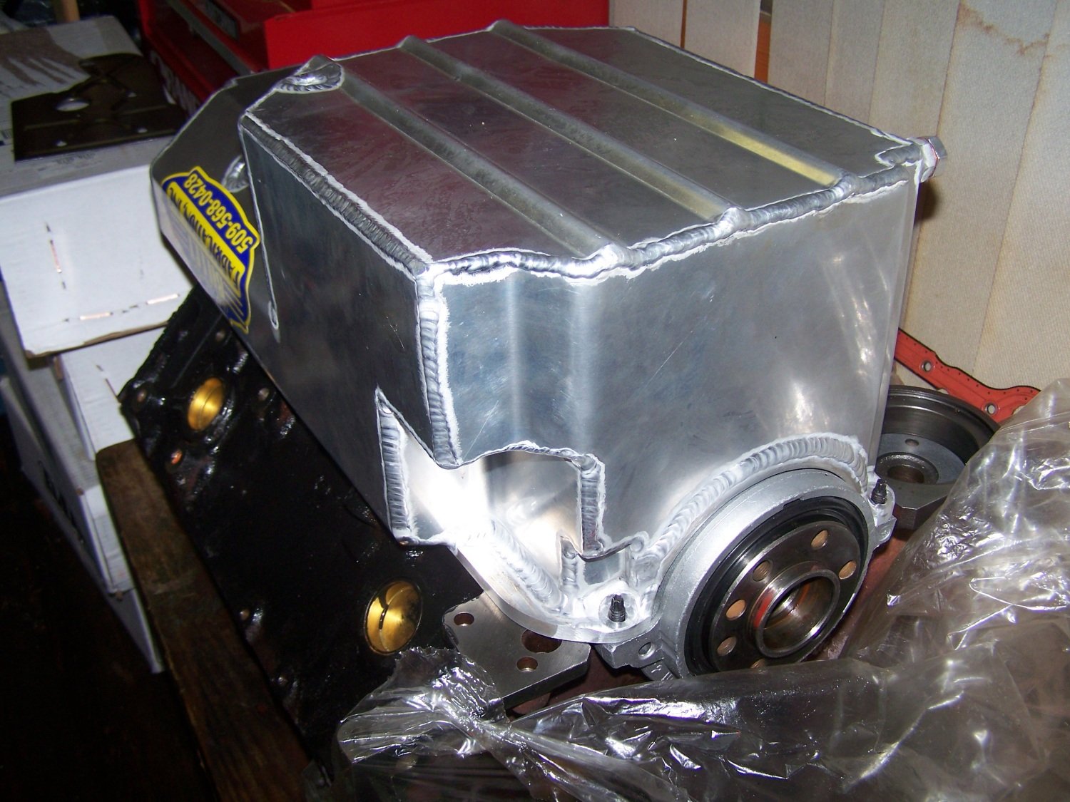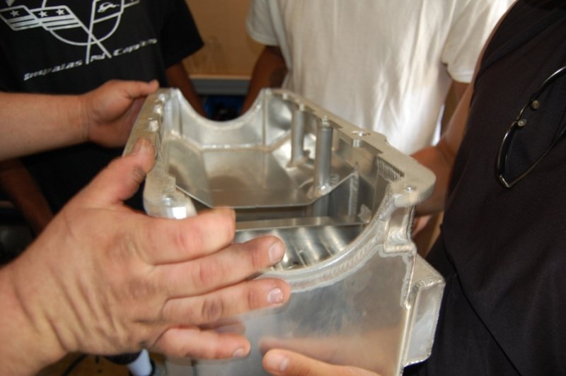Photos of the Billet Fabrication oil pan for Corvette sitting on